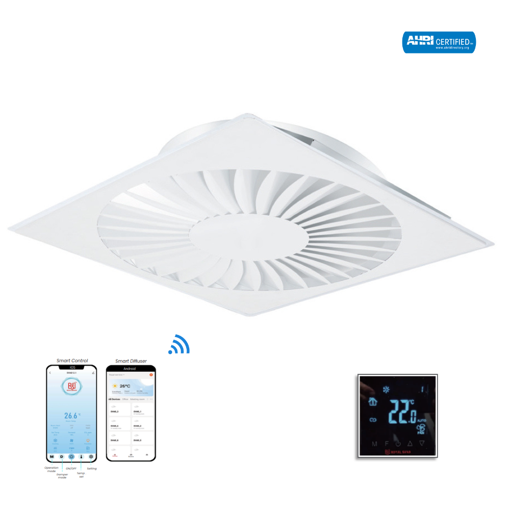 The Smart Electrically powered VAV Diffuser is available in Square Plaque, Swirl, Round or Linear.